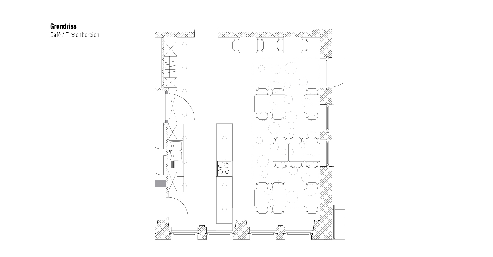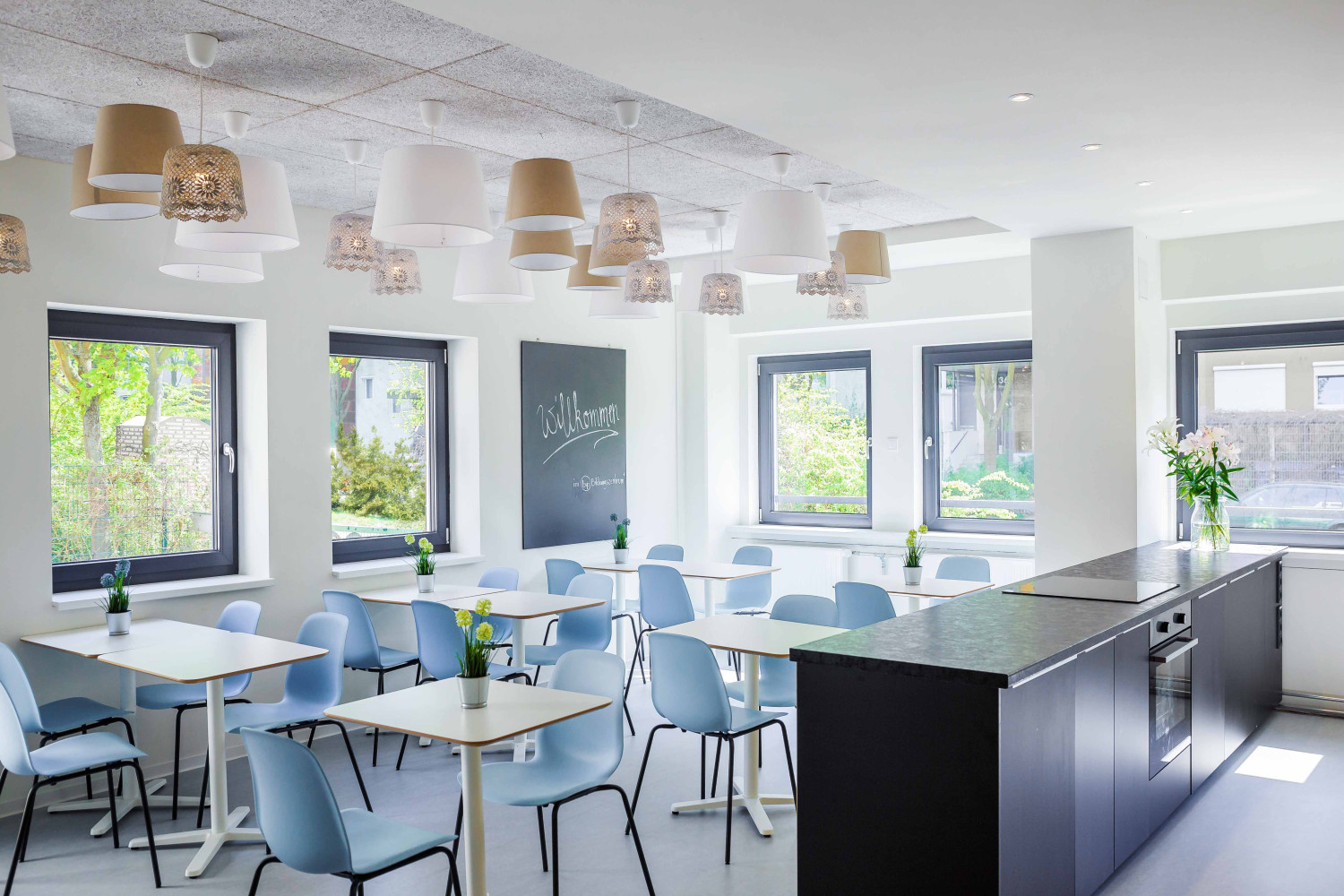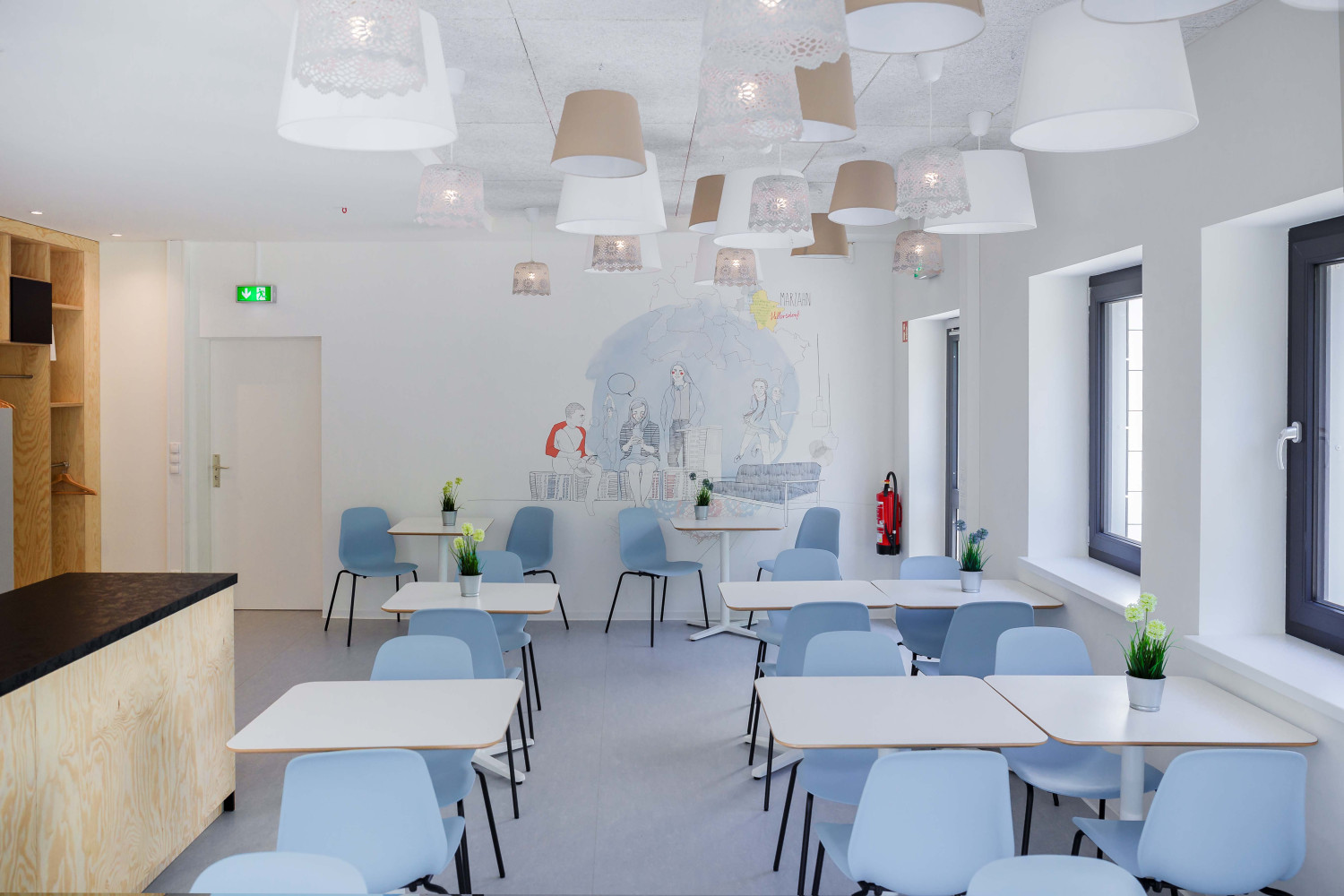 Das Bildungszentrum beinhaltet als Herzstück ein Café, welches in Zukunft als Begegnungsstätte für alle Menschen in der Nachbarschaft dienen soll. Bei unserer Planung war daher wichtig, das Konzept offen zu halten für Menschen im Alter von 0 bis 99, aller sozialer Schichten und unabhängig ihrer Herkunft. Neben dem Café gibt es einen Seminarraum und zwei Büros.