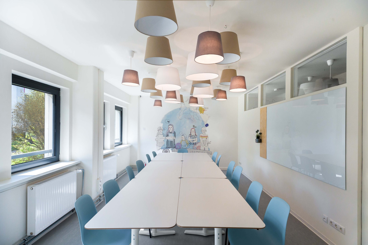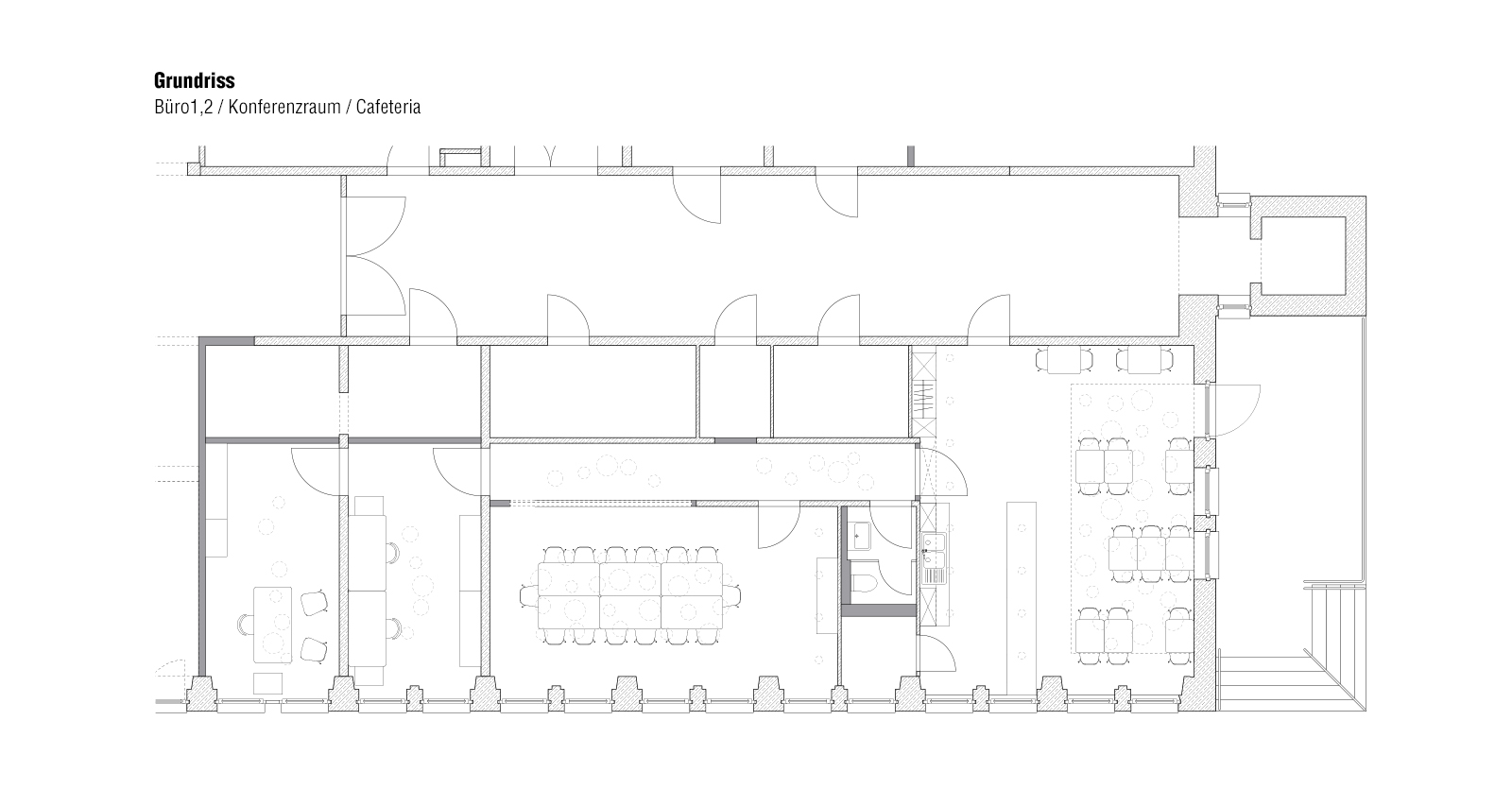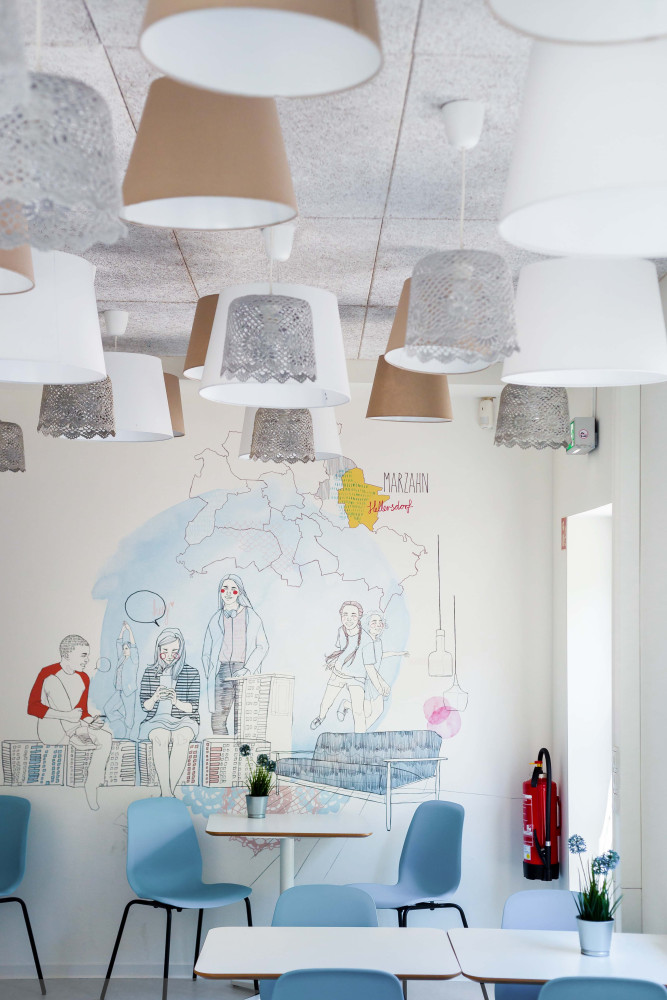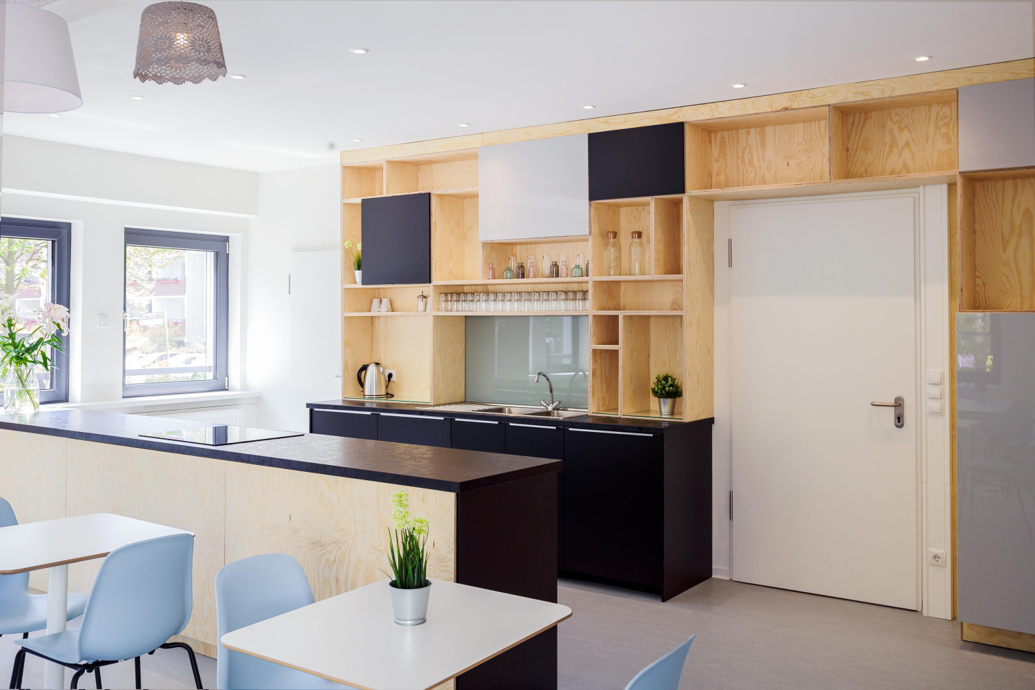 Das Bildungszentrum beinhaltet als Herzstück ein Café, welches in Zukunft als Begegnungsstätte für alle Menschen in der Nachbarschaft dienen soll. Bei unserer Planung war daher wichtig, das Konzept offen zu halten für Menschen im Alter von 0 bis 99, aller sozialer Schichten und unabhängig ihrer Herkunft. Neben dem Café gibt es einen Seminarraum und zwei Büros.