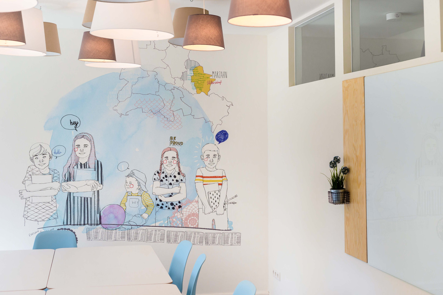 Das Café soll neben den klassischen Funktionen eines Cafés auch für kreative Aktivitäten, für Treffen verschiedener Gruppen und zum Kochen und Backen mit Kita- und Schulkindern dienen.